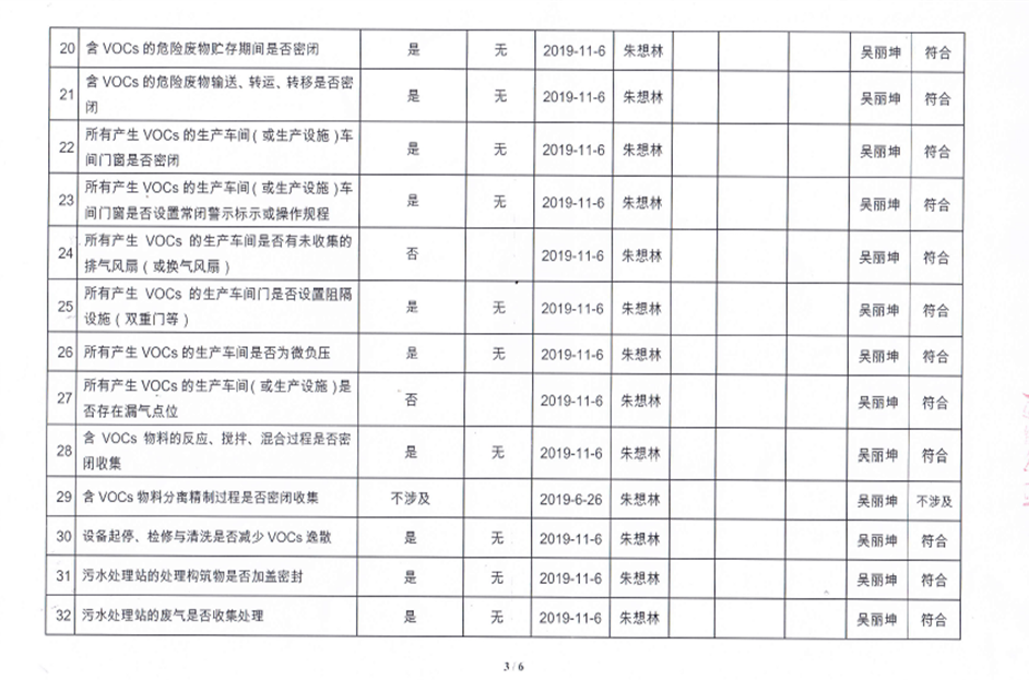 揮發(fā)性有機(jī)物污染防治企業(yè)自查表【2019(2)】