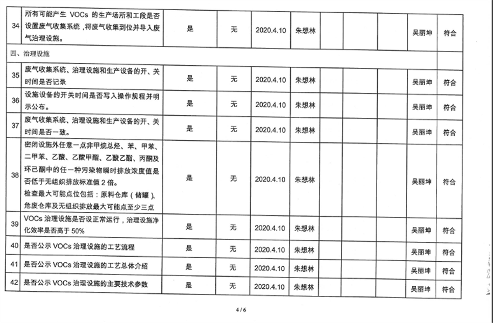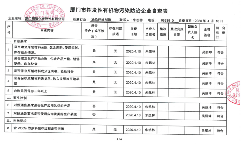 廈門(mén)市揮發(fā)性有機(jī)物污染防治企業(yè)自查表(2020年第一季度)