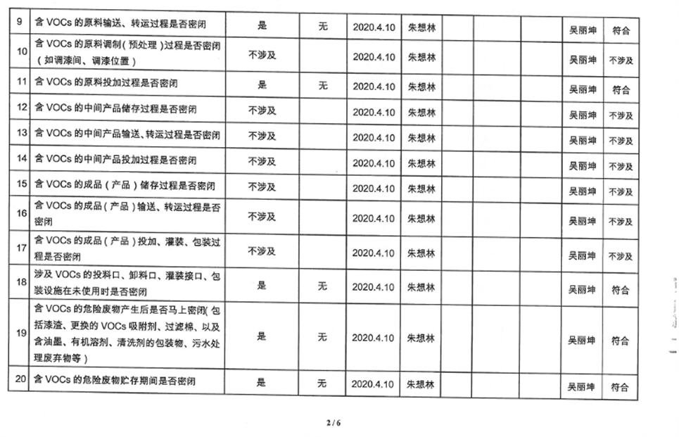 廈門(mén)市揮發(fā)性有機(jī)物污染防治企業(yè)自查表(2020年第二季度)