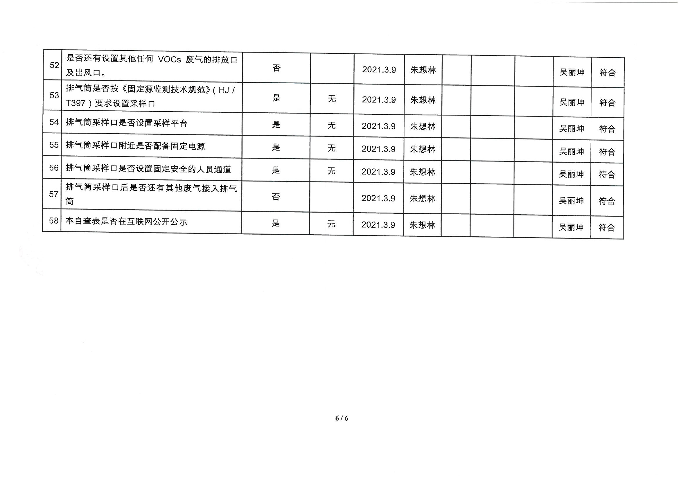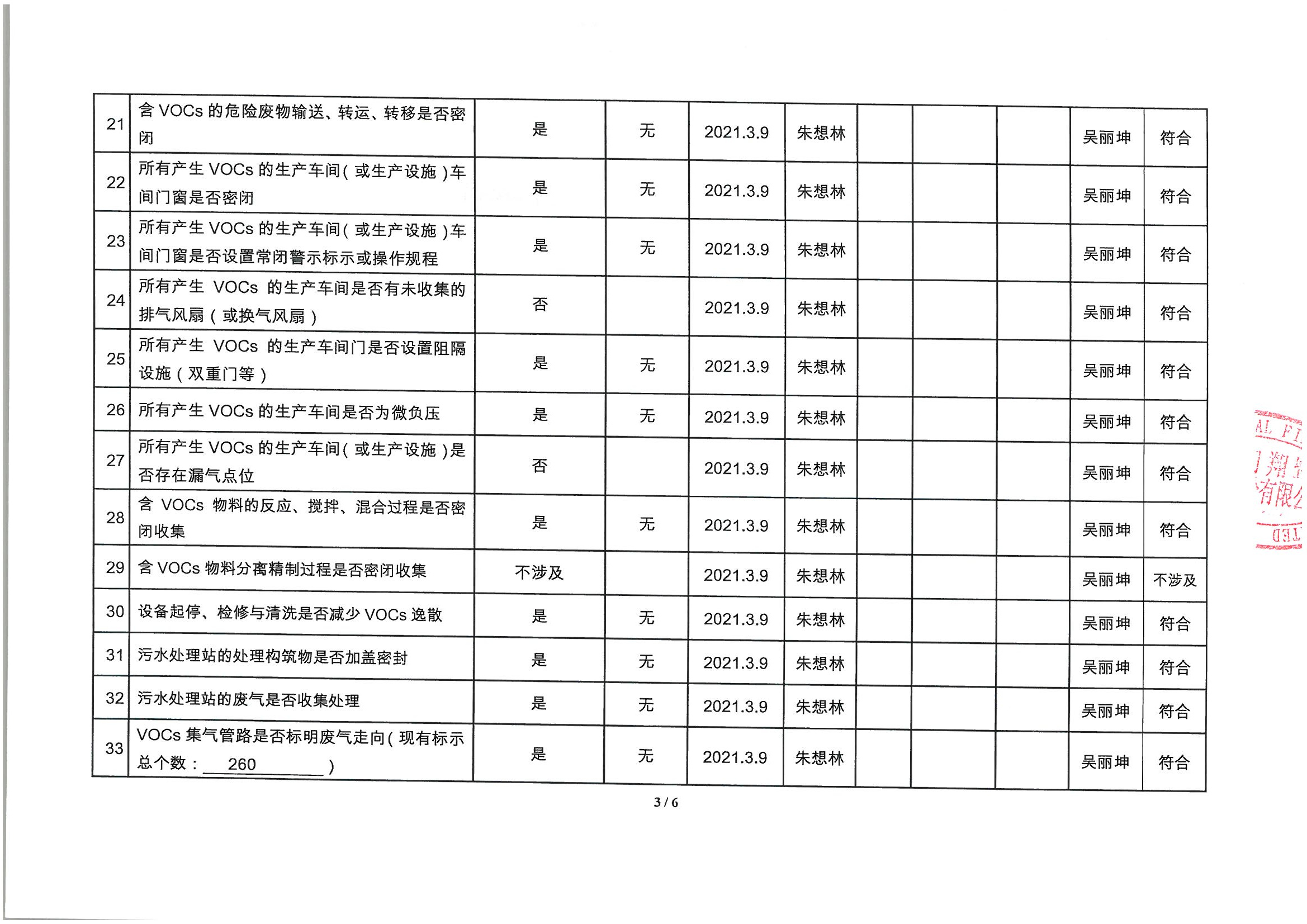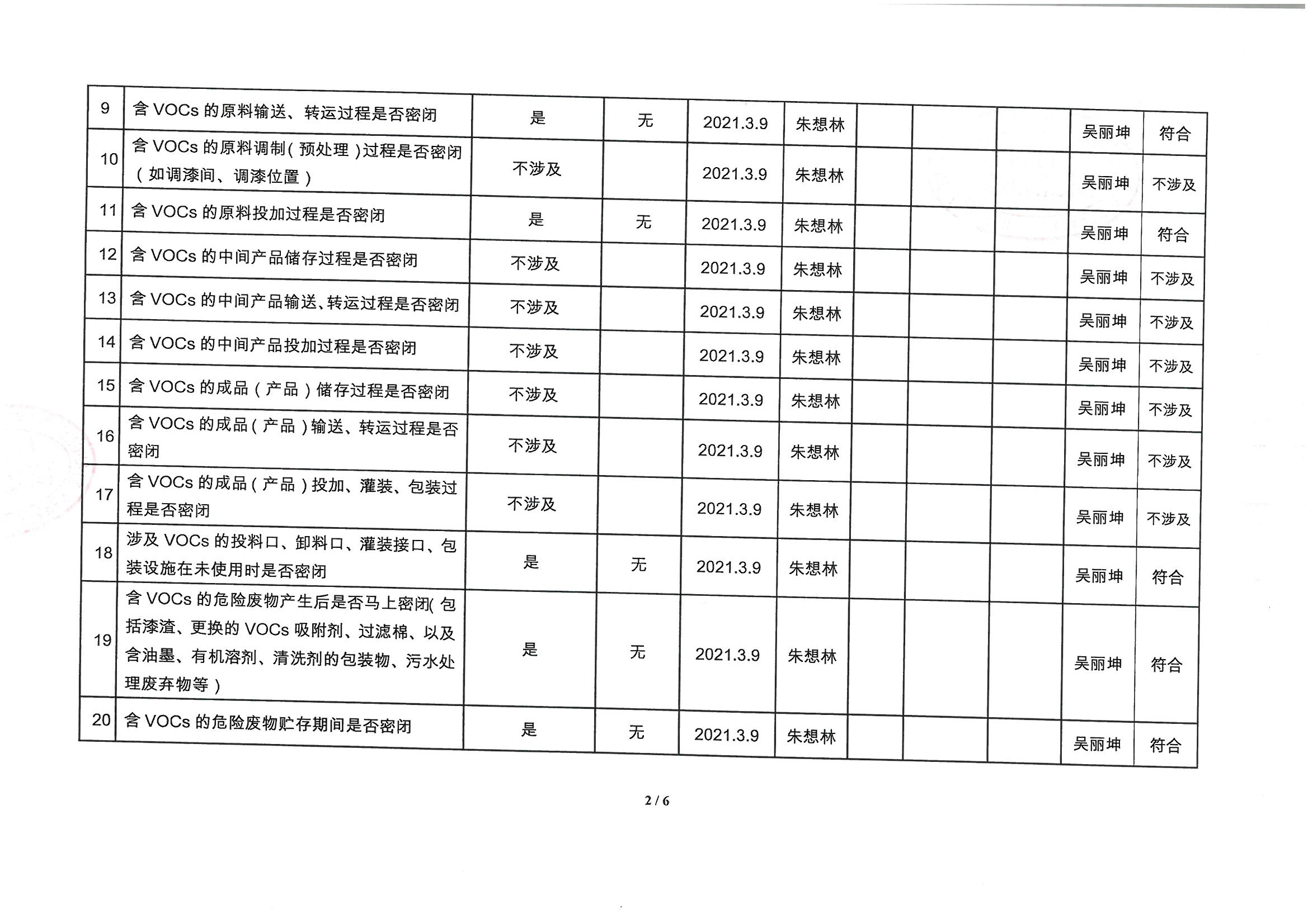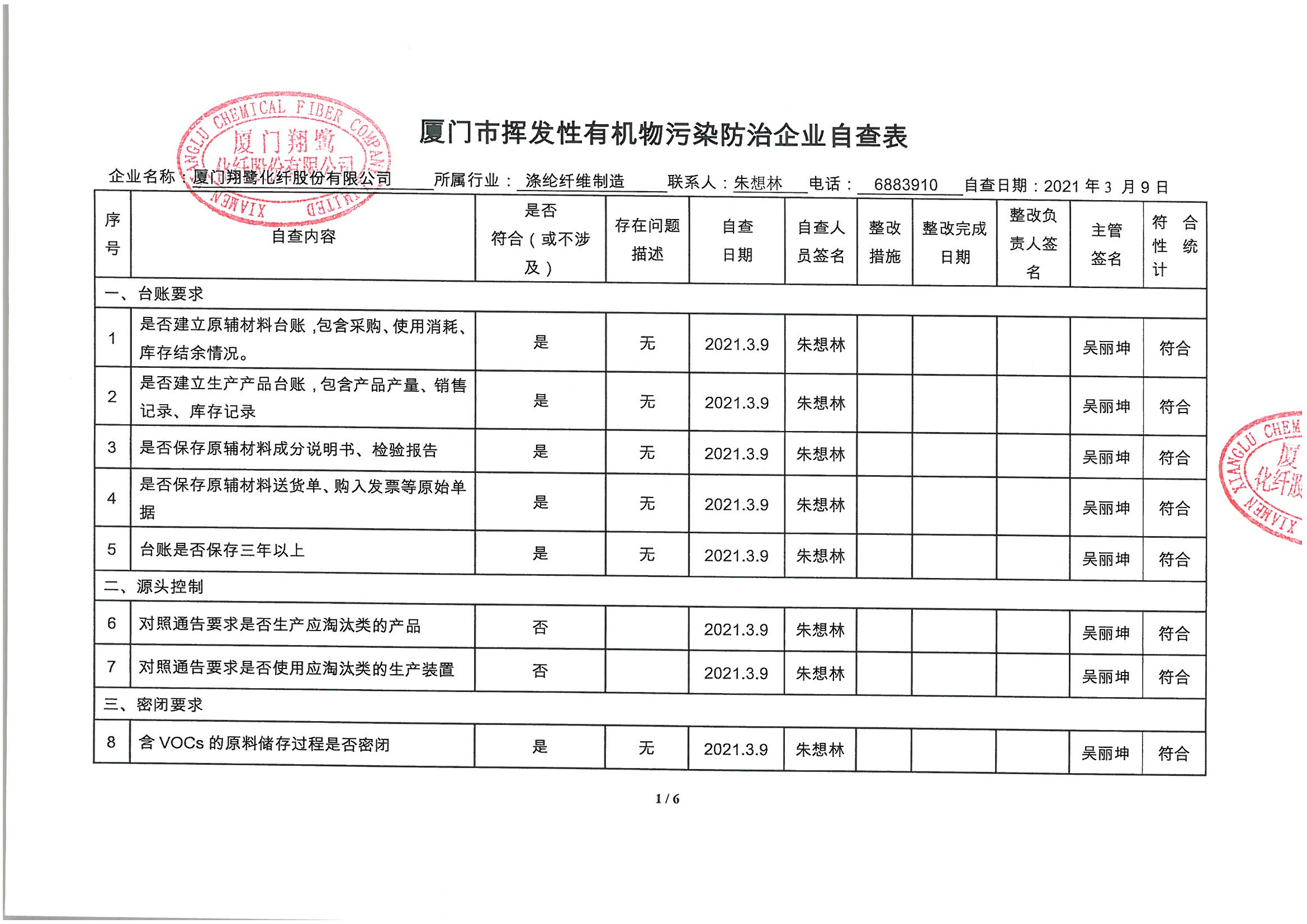 廈門市揮發(fā)性有機物污染防治企業(yè)自查表 (2021年 第一季度)