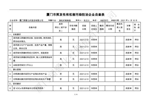 廈門市揮發(fā)性有機物污染防治企業(yè)自查表(2021年 第二季度)